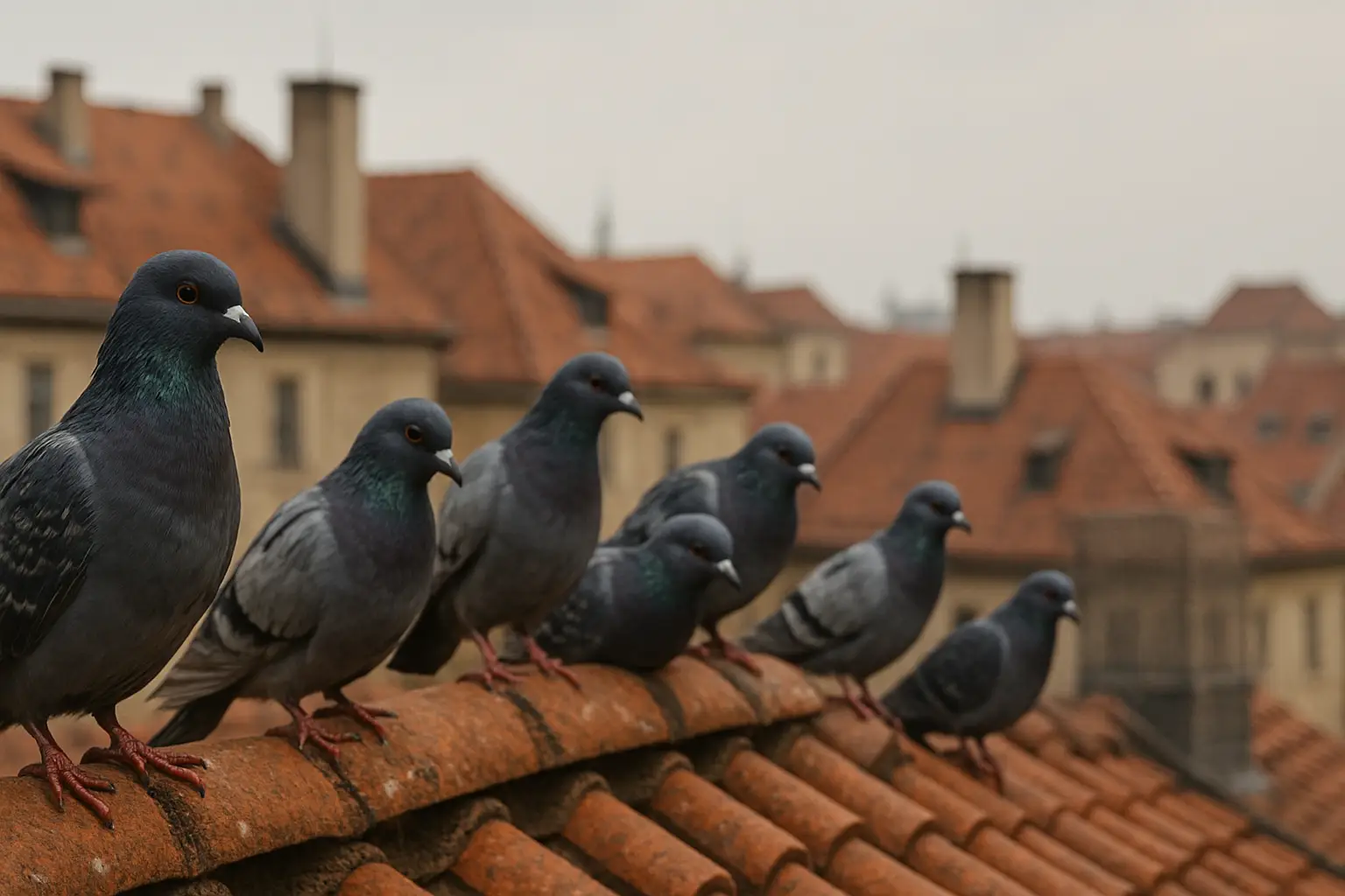 Přemnožení holubi znamenají špínu, hluk a trvalé poškozování fasád, střech a technologií. Zápach, alergeny a paraziti z trusu představují reálné zdravotní riziko pro obyvatele i zaměstnance. Proto nestačí holuby jen občas zahnat, je potřeba systematický zásah a prevence.